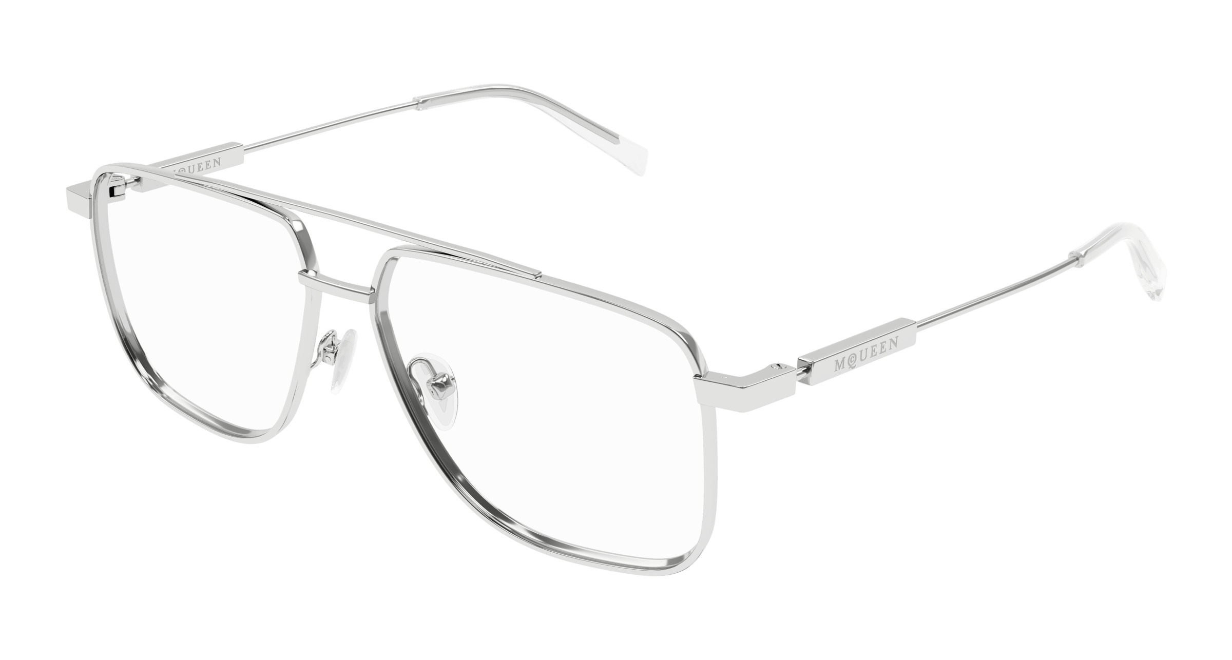 Alexander McQueen AM0480O Eyeglasses, 001 - SILVER with TRANSPARENT lenses