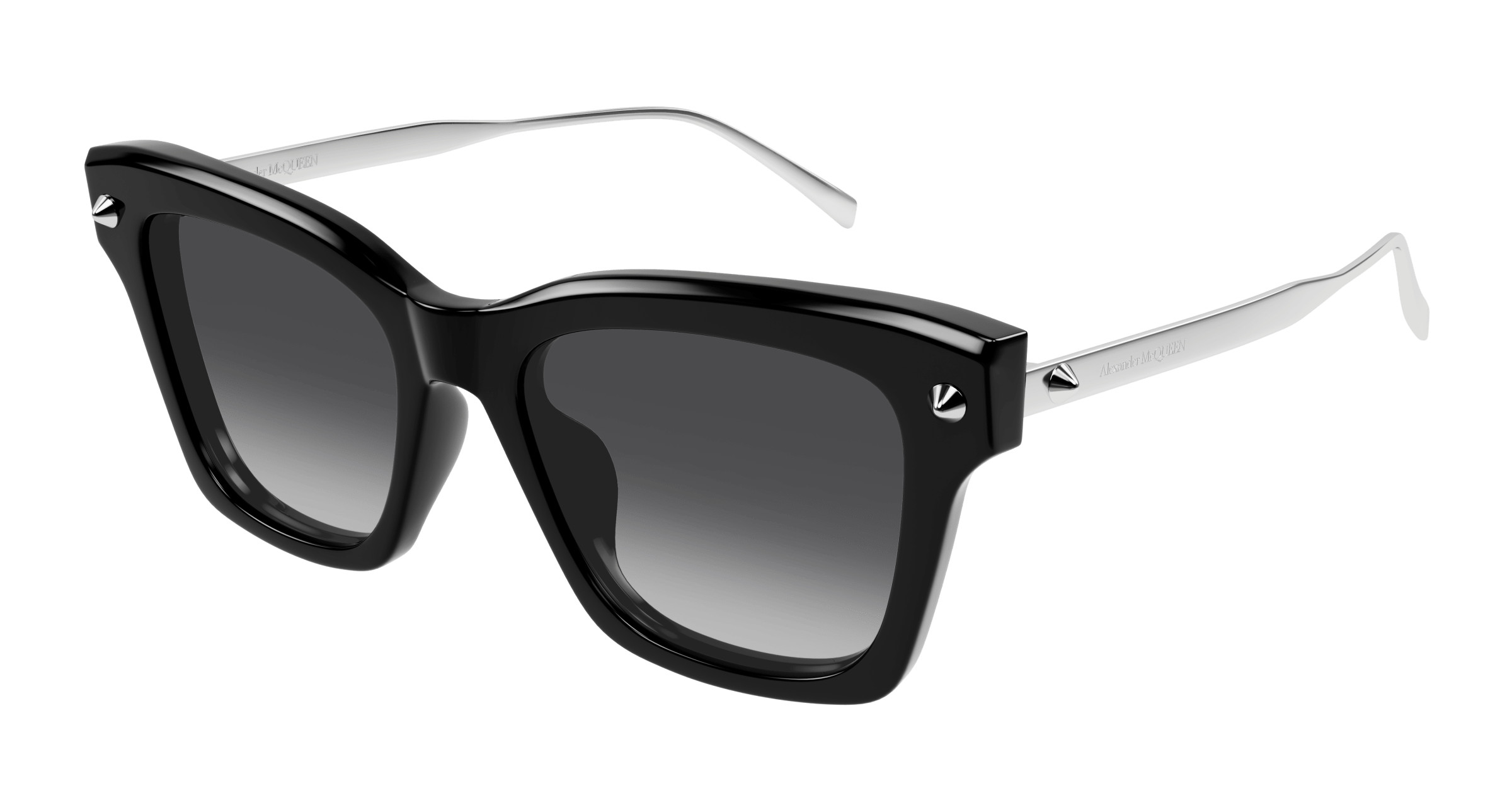 Alexander McQueen AM0483S Sunglasses, 001 - BLACK with SILVER temples and GREY lenses