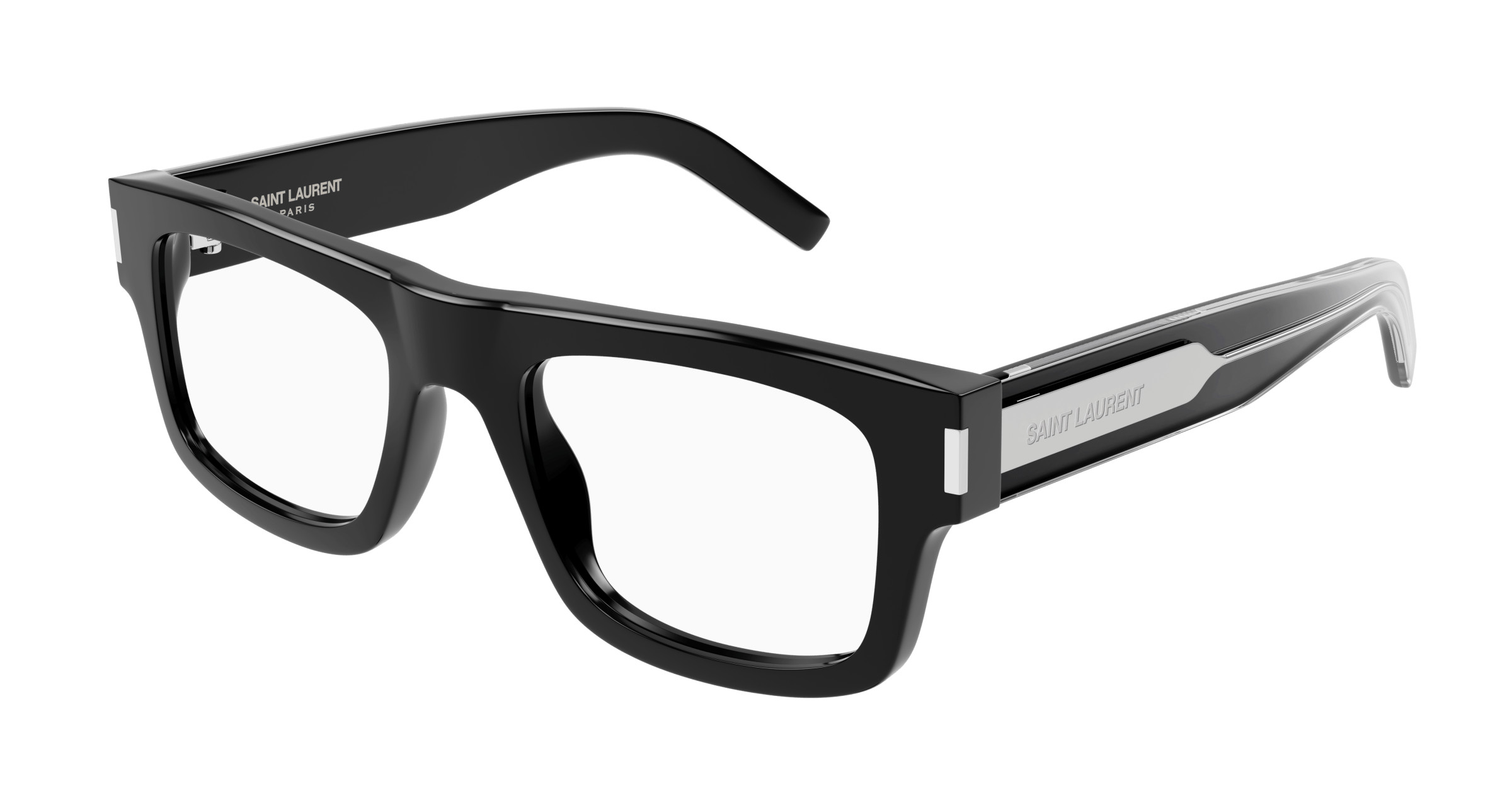Saint Laurent SL 574 Eyeglasses, 001 - BLACK with CRYSTAL temples and TRANSPARENT lenses